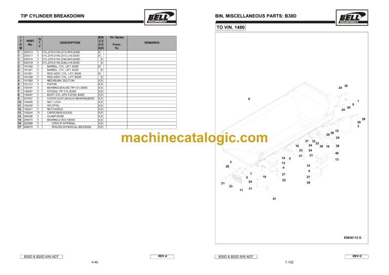 Bell B30D 6X6 ADT, B25D 6X6 ADT Articulated Dump Truck Index: