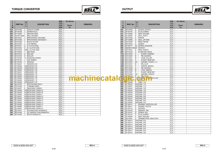 Bell B30D 6X6 ADT, B25D 6X6 ADT Articulated Dump Truck Index: