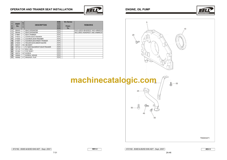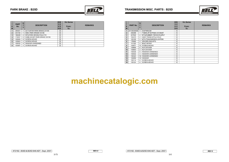 Bell B30D & B25D 6X6 MkV ADT Articulated Dump Truck Parts Manual (872182)