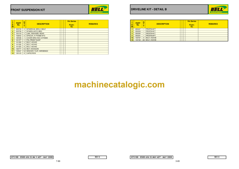 Bell B30D MK 6.3 SCR, WDB ADT Articulated Dump Truck Parts Manual (872275) (A630D63, A631D63)