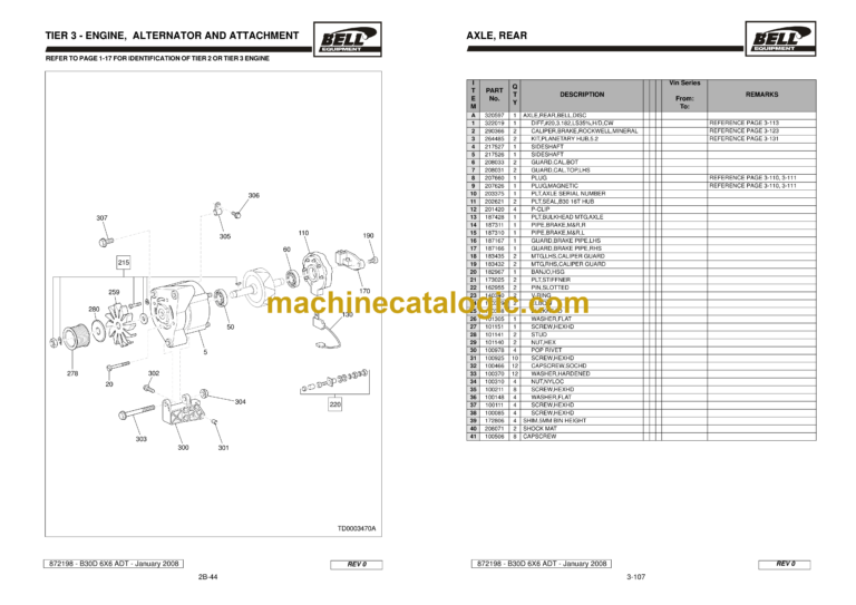 Bell B30D Mk V ADT – 416833 B30D Mk V WDB ADT – 416830 Articulated Dump Truck Parts Manual (872198)