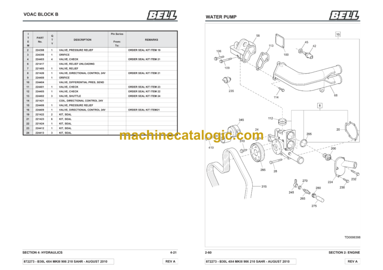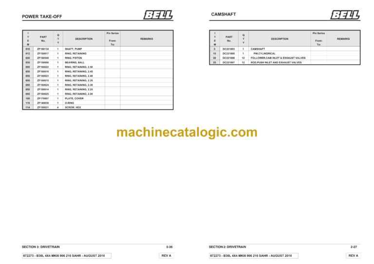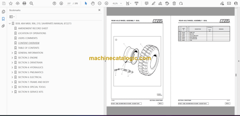 Bell B30L 4X4 MKIII, 906, 210, SAHR Articulated Dump Truck Parts Manual (872273)