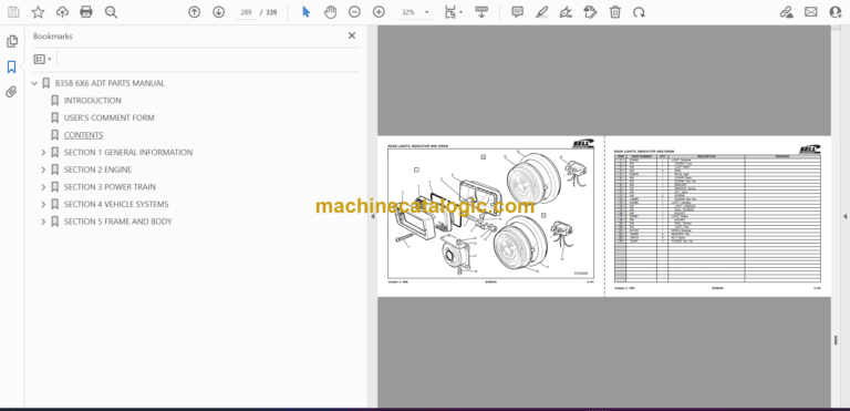 Bell B35B 6X6 ADT Articulated Dump Truck Parts Manual (870166)