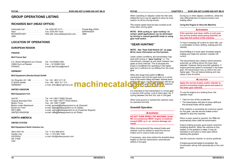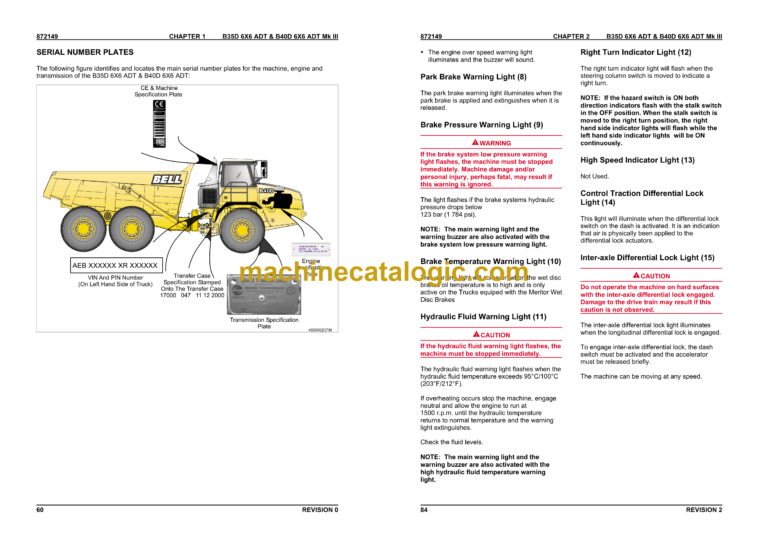 Bell B35D 6X6 and B40D 6X6 Mk III Articulated Dump Truck Index: