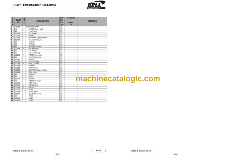 Bell B40D 6X6 ADT, B35D 6X6 ADT Articulated Dump Truck Index: