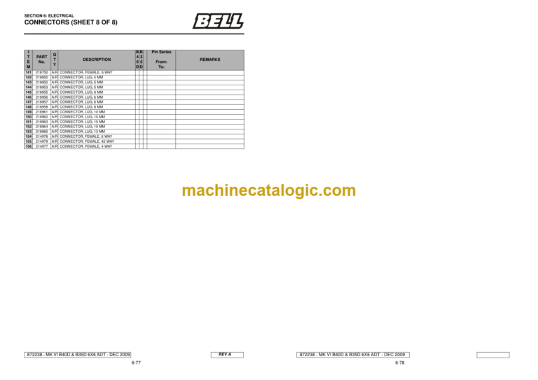 BELL B40D 6X6 ADT Mk VI, B35D 6X6 ADT Mk VI, B35D 6X6 WDB ADT Mk VI Parts Manual