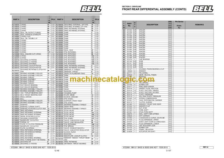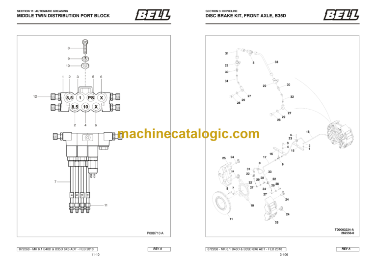 Bell B40D, B35D 6X6 ADT MK 6.1, B35D 6X6 WDB ADT MK 6 Articulated Dump Truck Parts Manual (872268) (A840D61, A835D61, A836D61)