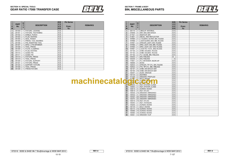 Bell B40D, B35D ADT MK 7 Blu@dvantage, B35D WDB ADT MK 7 Articulated Dump Truck Parts Manual (872318) (A640D70, A635D70, A636D70)