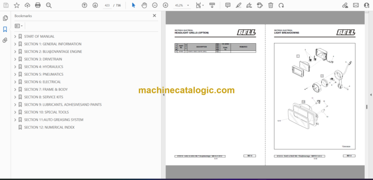 Bell B45D, B50D Blu@dvantage ADT Articulated Dump Truck Index: