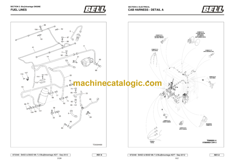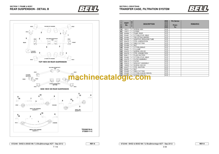 Bell B45D, B50D MK7.2 Blu@dvantage ADT Articulated Dump Truck Parts Manual (872348) (A645D72, A650D72)