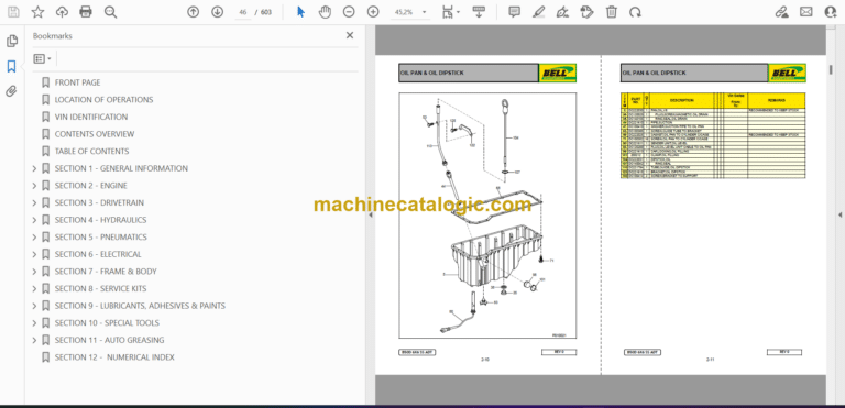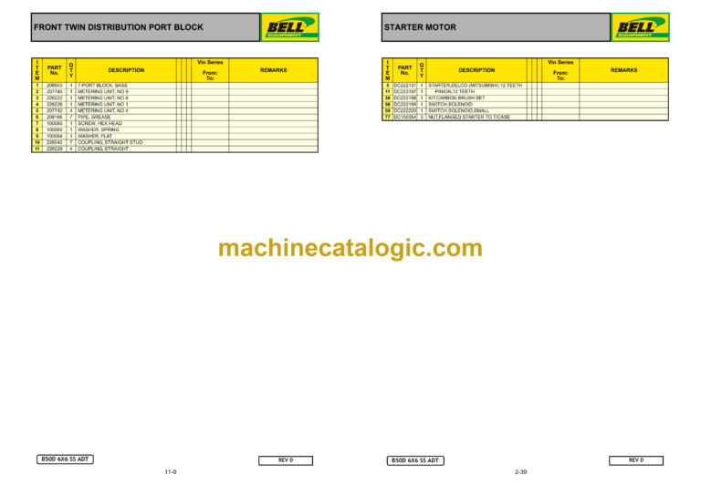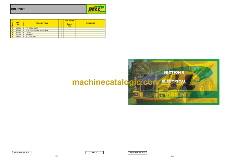 Bell B50D 6X6 SS ADT G2 Articulated Dump Truck Parts Manual (872140)
