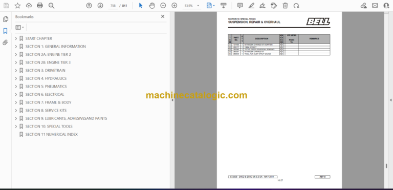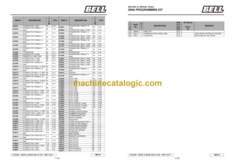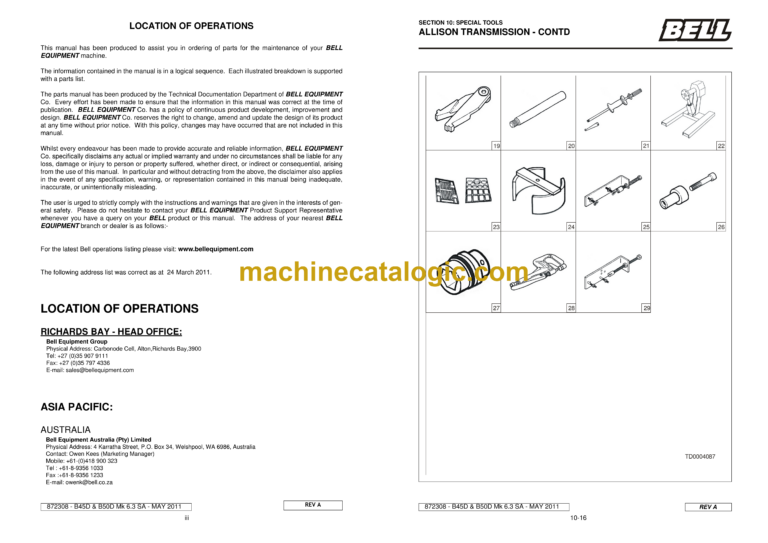 Bell B50D ADT MK 6.3 – A850D63, B45D ADT MK 6.3 – A845D63 Articulated Dump Truck Index:
