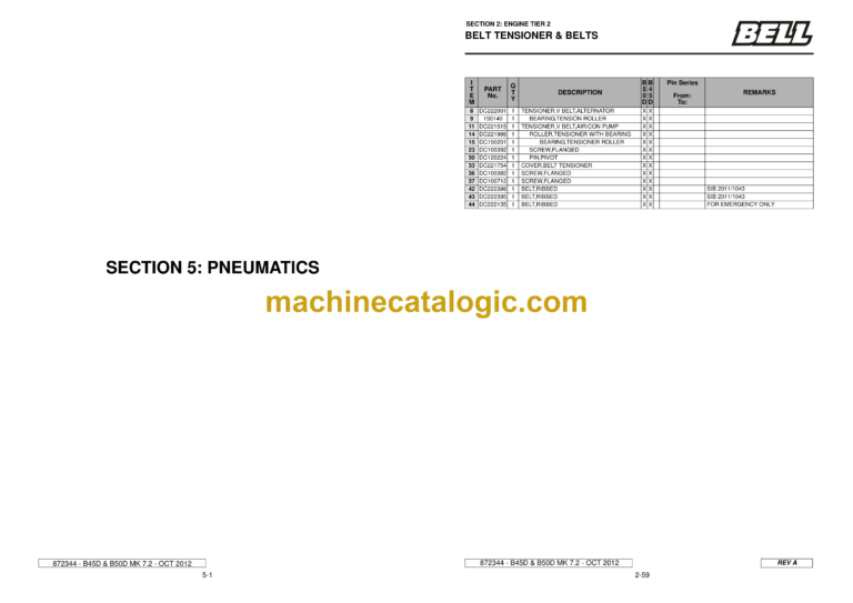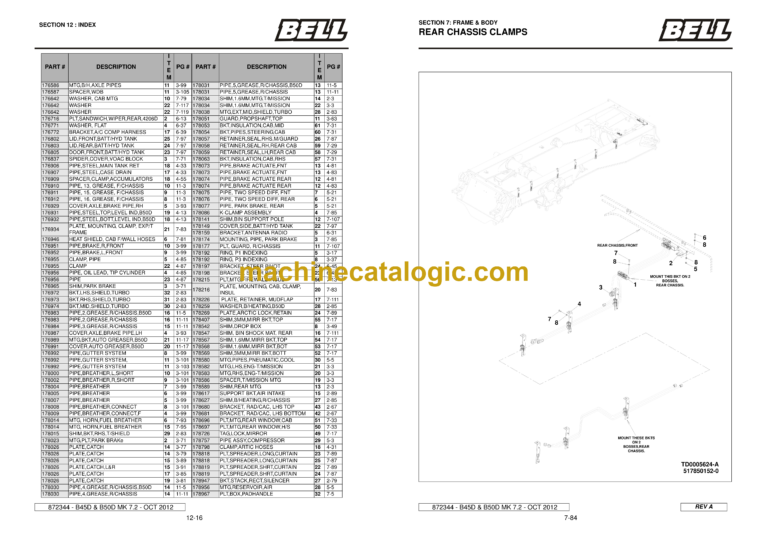 Bell B50D, B45D ADT MK 7.2 Articulated Dump Truck Index: