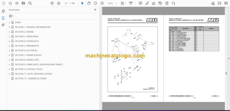 Bell B50D, B45D ADT MK 7.3 Articulated Dump Parts Manual (872376) (A850D73, A845D73)