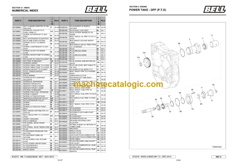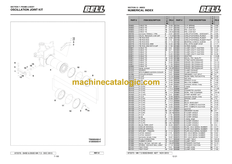 Bell B50D, B45D ADT MK 7.3 Articulated Dump Truck Index: