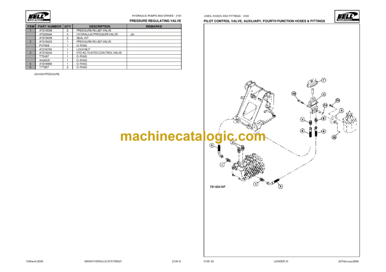 MAIN CON TROL VALVE HY DRAU LIC FIT TINGS . . . . 3100-31
