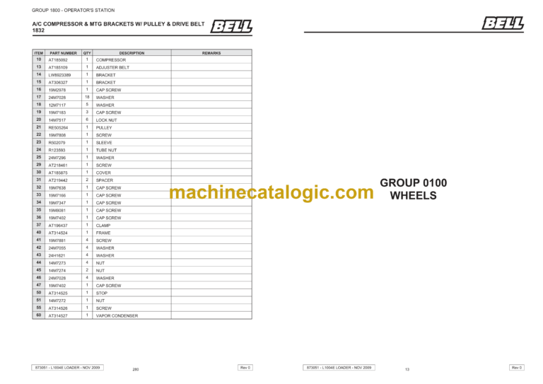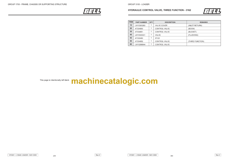 Bell L1004E Loader D810E00 Parts Manual (873051)