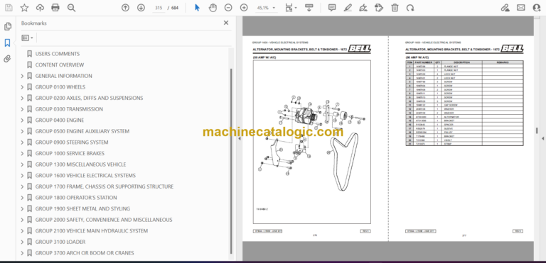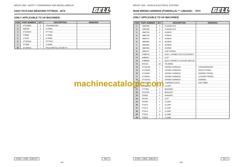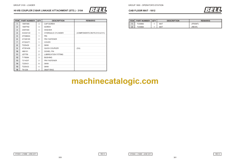 Bell L1506E Loader D815E00L Parts Manual (873044)