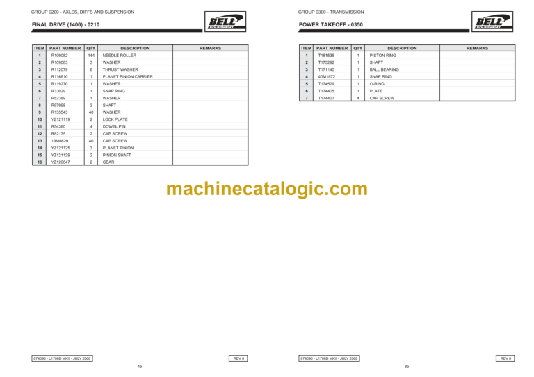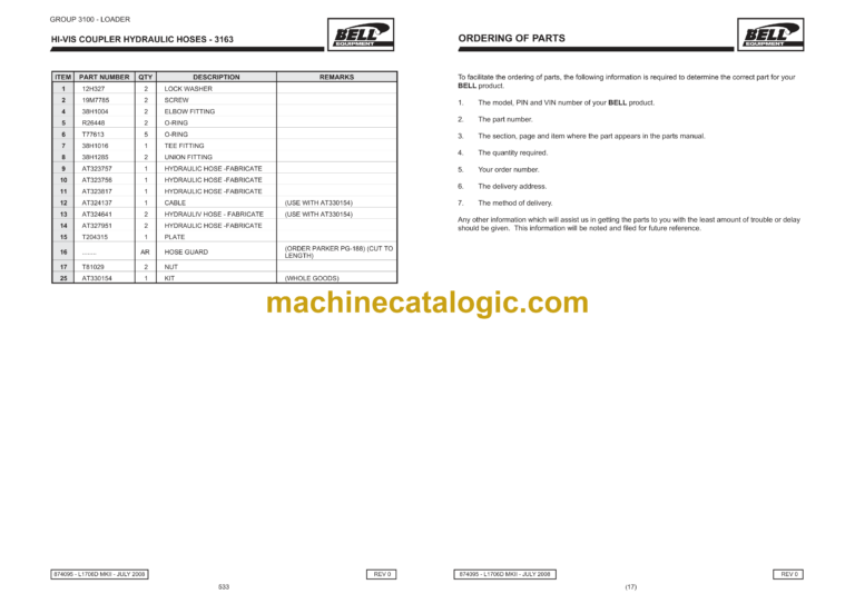 Bell L1706D Mk II Loader Parts Manual (874095)