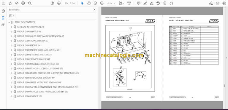 Bell L1706E Loader D817E00 Parts Manual (873045)