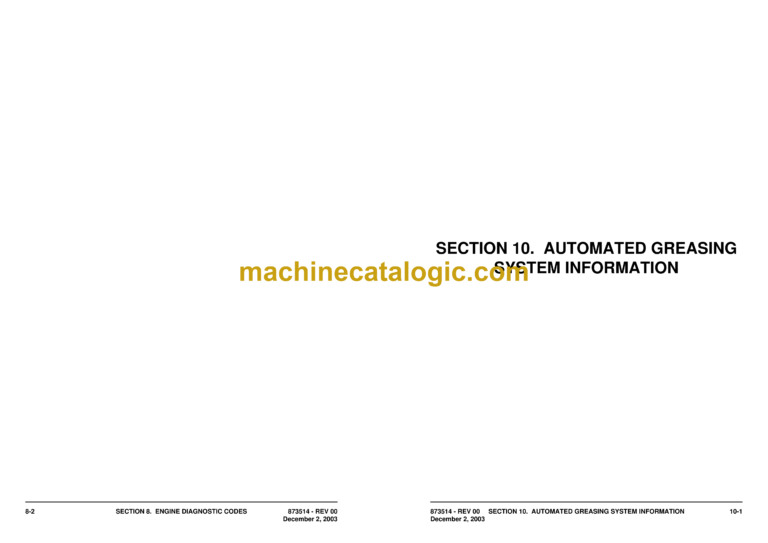 SECTION 10. AUTOMATED GREASING SYSTEM INFORMATION 10-1