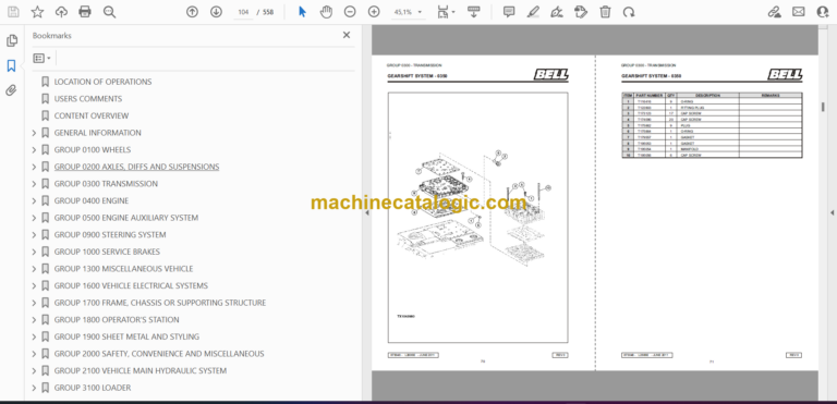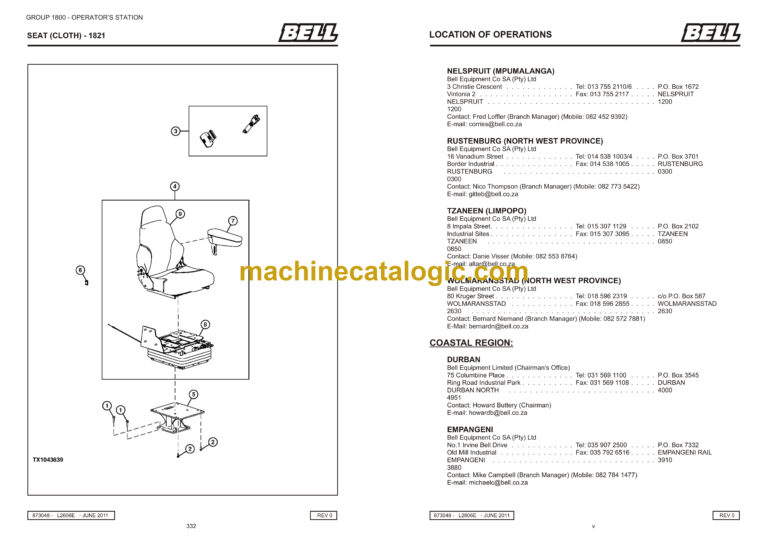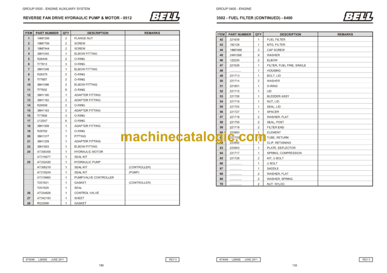 Bell L2606E Loader D826E00 Parts Manual (873048)
