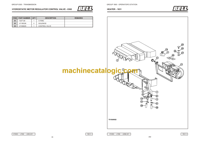 Bell L705E Loader D807E00 Parts Manual (873050)
