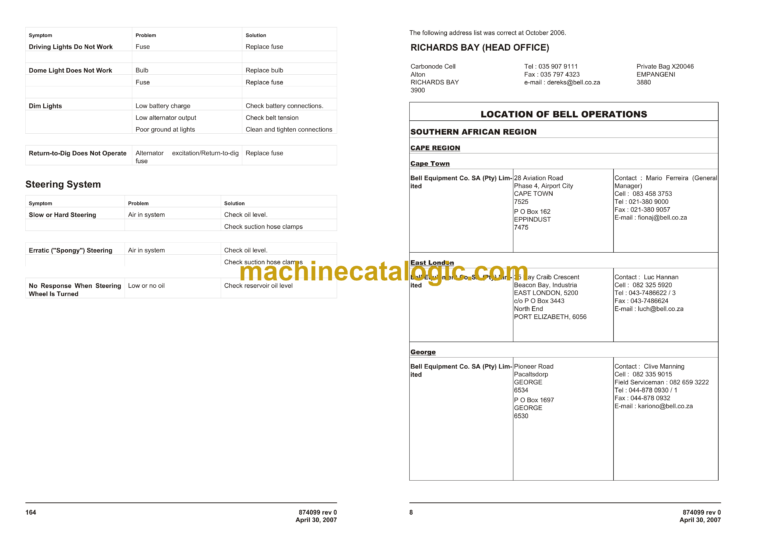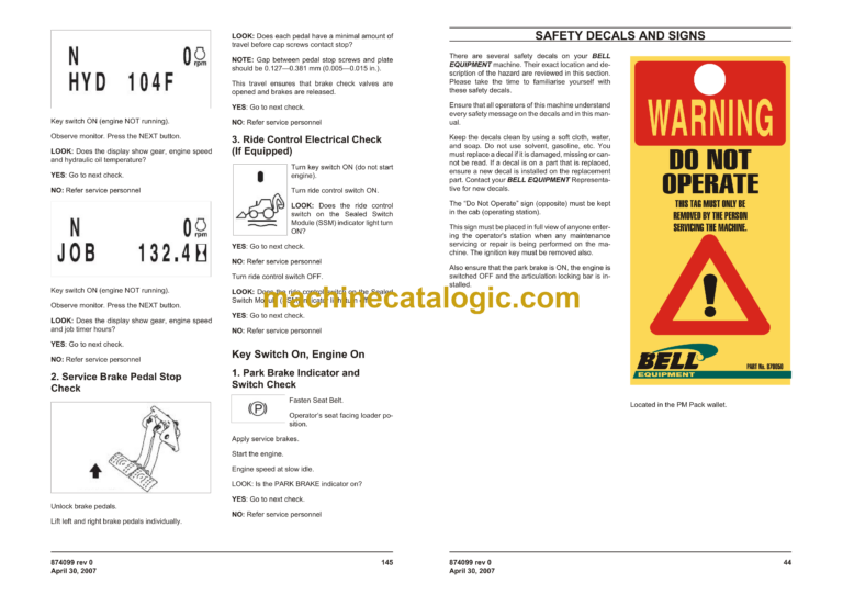 Bell TLB 315SJ Tractor Loader Backhoe Sideshift Operator’s Manual (874099)