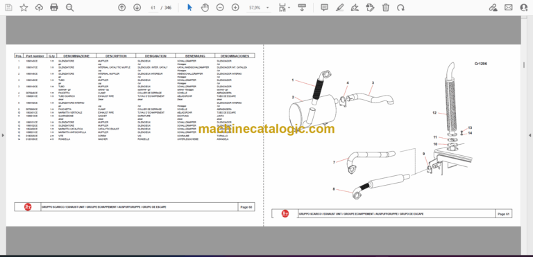 16 – GRUPPO SCARICO / EXHAUST UNIT / GROUPE ECHAPPEMENT / AUSPUFFGRUPPE / GRUPO DE ESCAPE……………………………………………………………………………………………………………………………………………………………. Page 60
