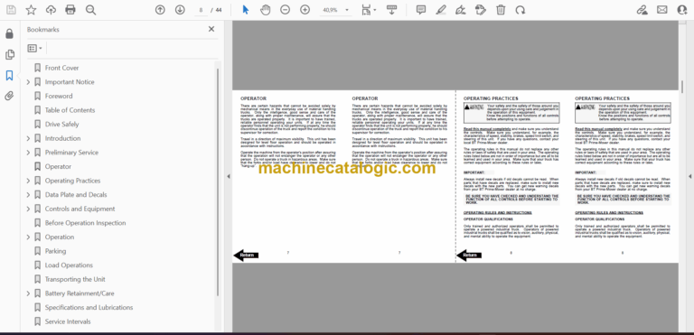 BT HX80 Forklift Operator and Parts Manual