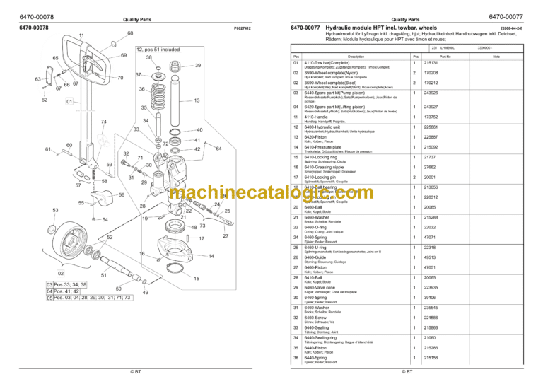 BT LHM200L, LHM200Z Hand Pallet Truck Quality Parts Manual