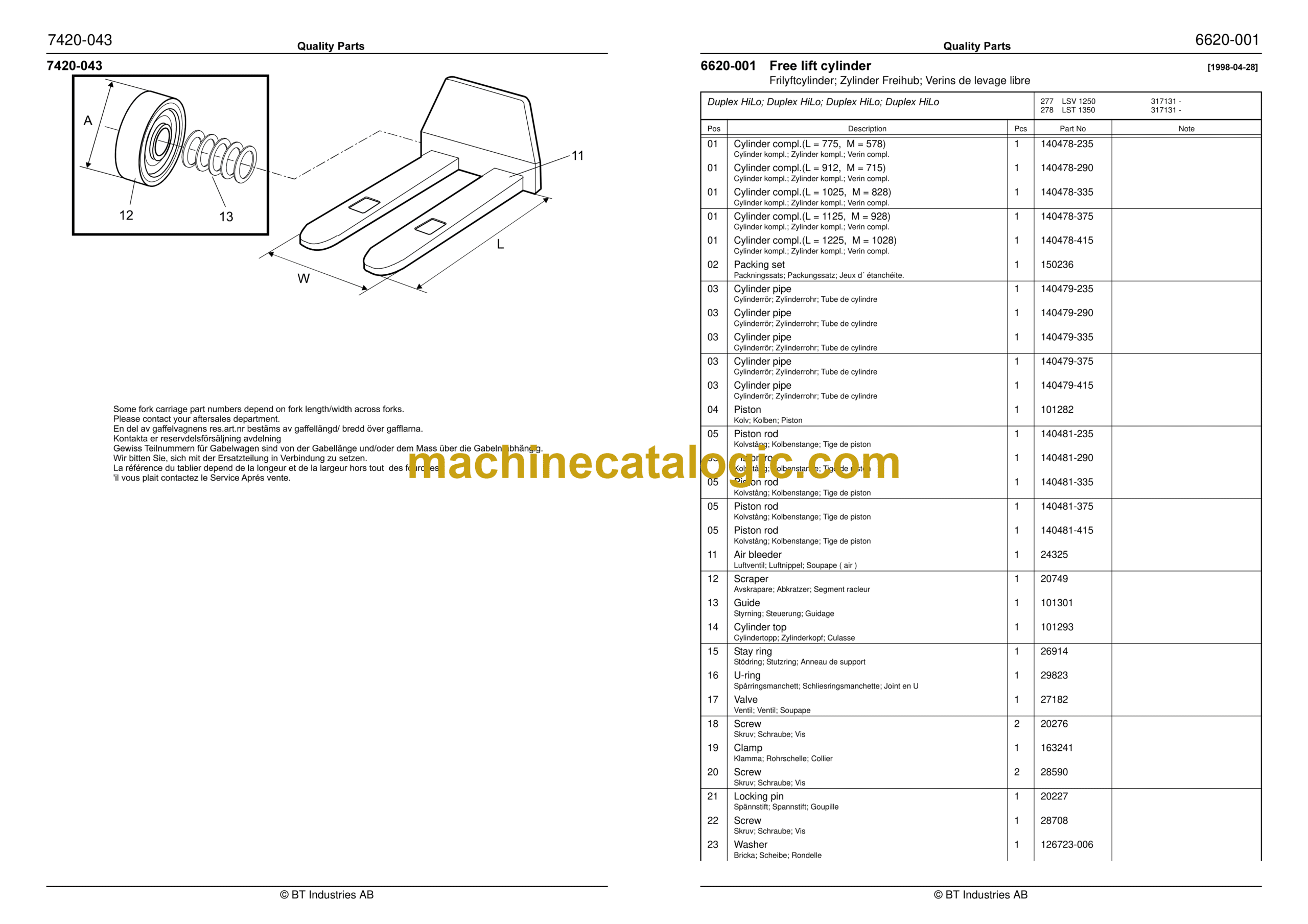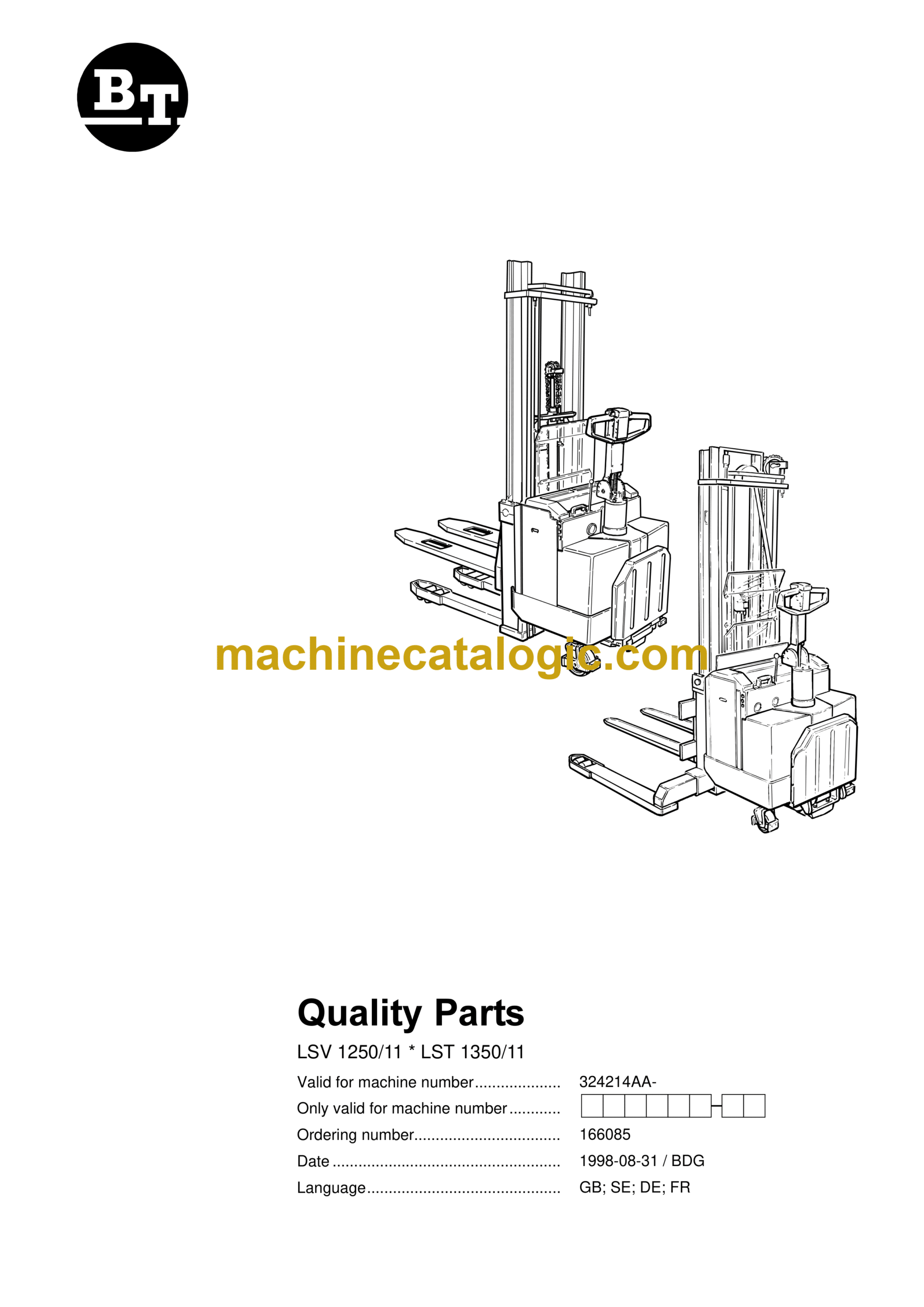 BT LSV1250-11, LST1350-11 Pedestrian Stacker Quality Parts Manual