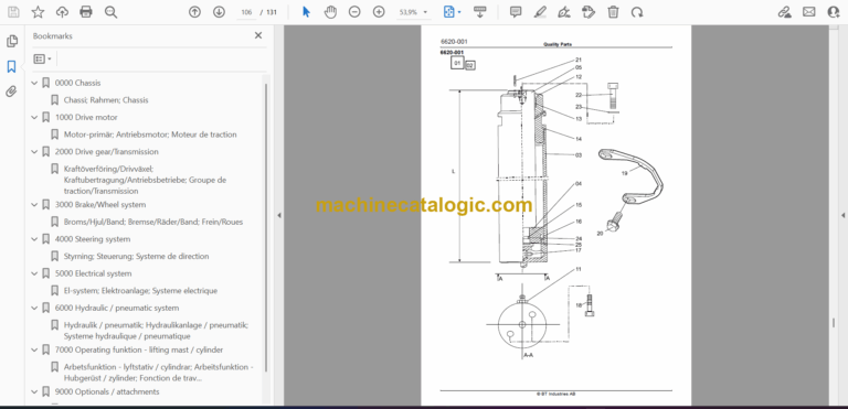 Arbetsfunktion – lyftstativ / cylindrar; Arbeitsfunktion – Hubgerüst / zylinder; Fonction de trav…