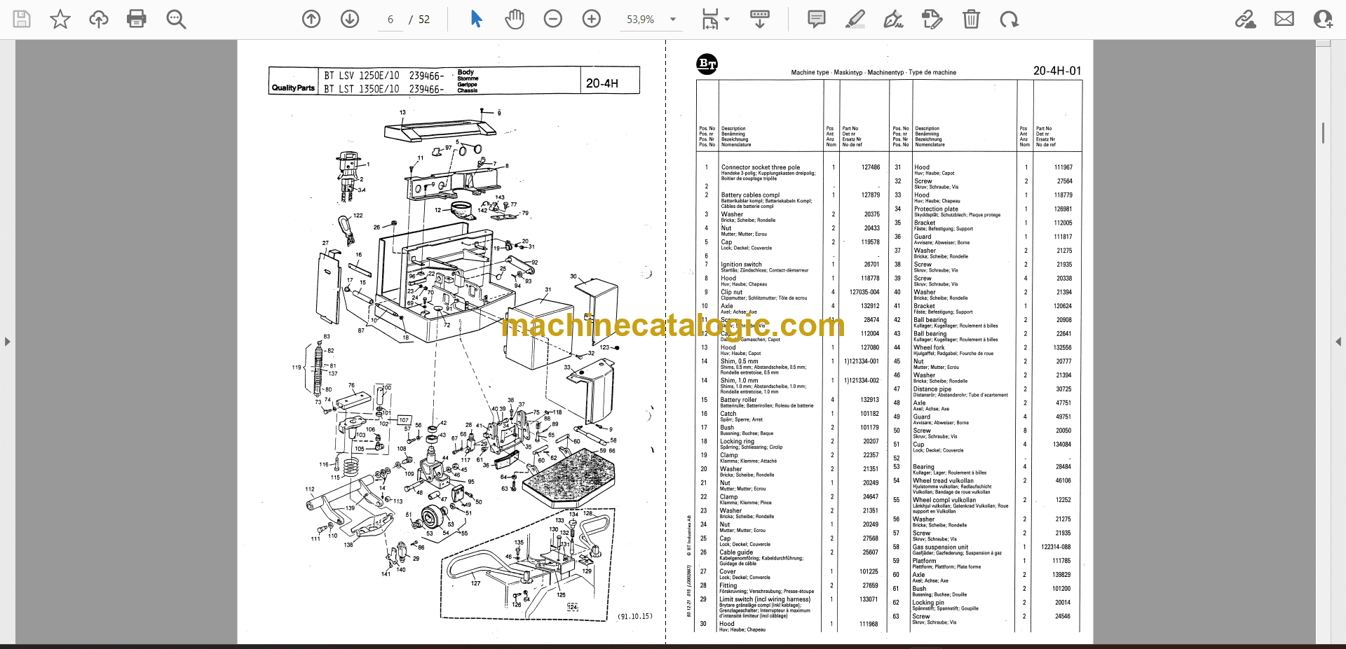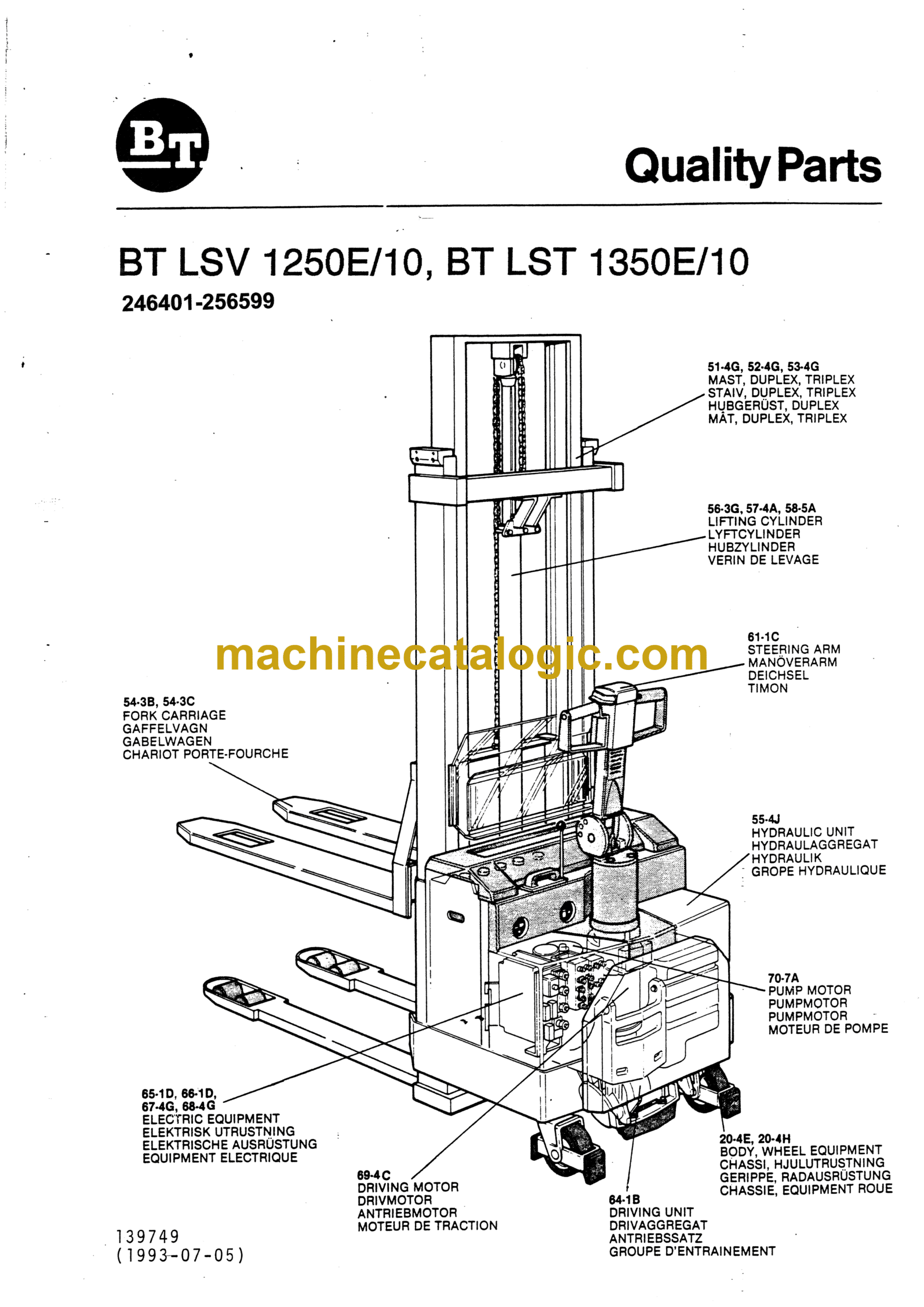BT LSV1250E-10, LST1350E-10 Electric Stacker Quality Parts Manual