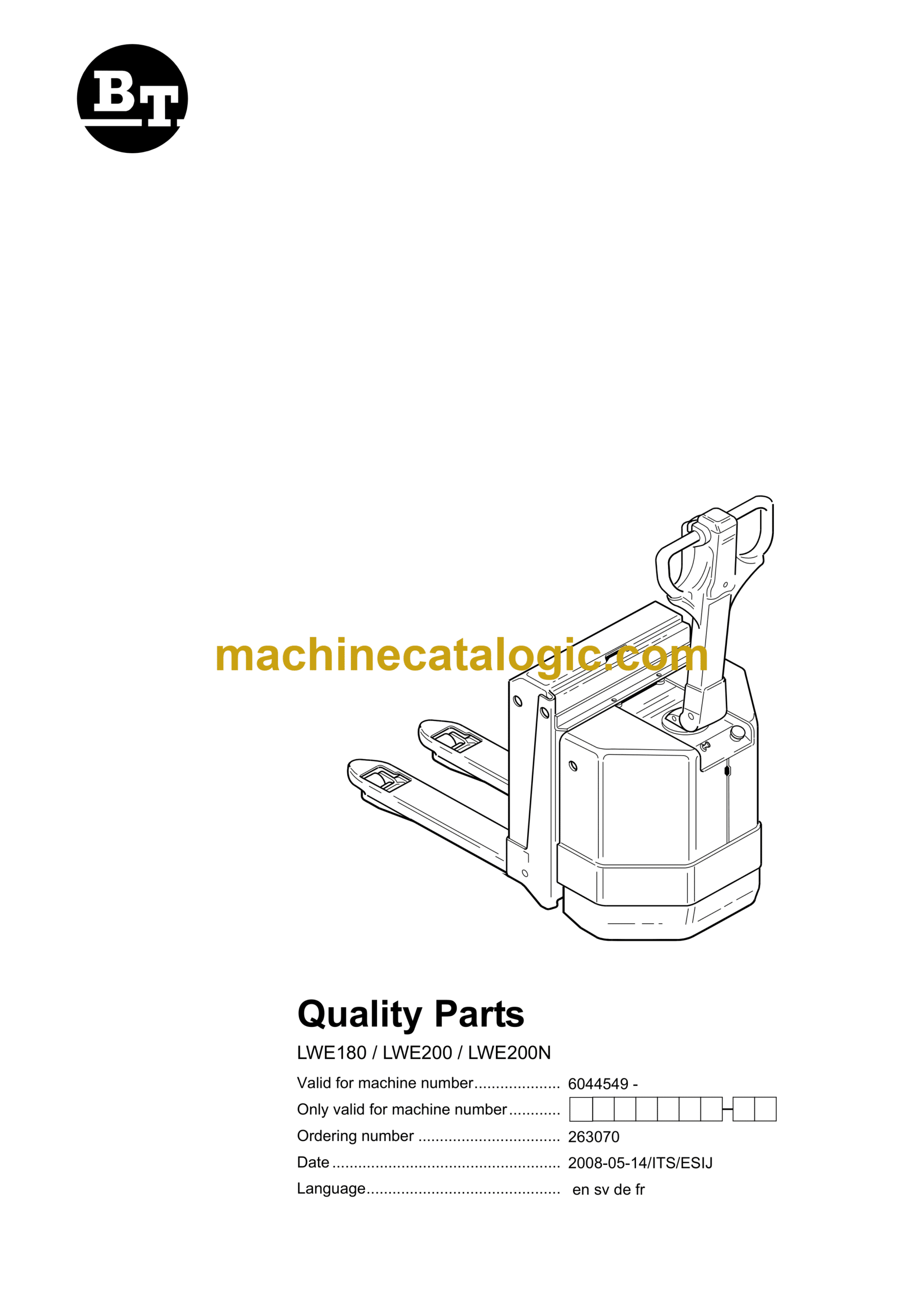 BT LWE180, LWE200, LWE200N Electric Pallet Truck Quality Parts Manual