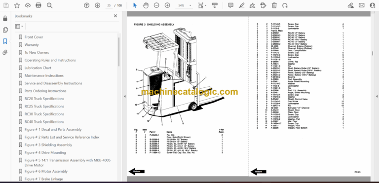 BT RC20, RC25, RC30, RC40 Reach Truck Full Manual (Service, Parts and Operators Manual)