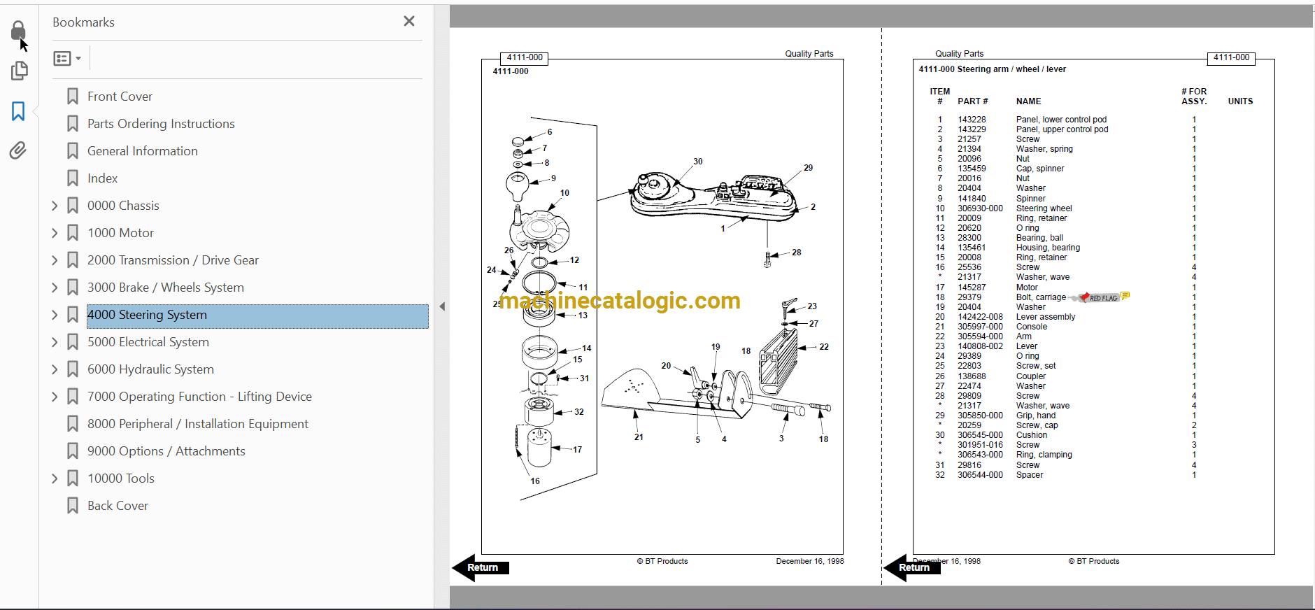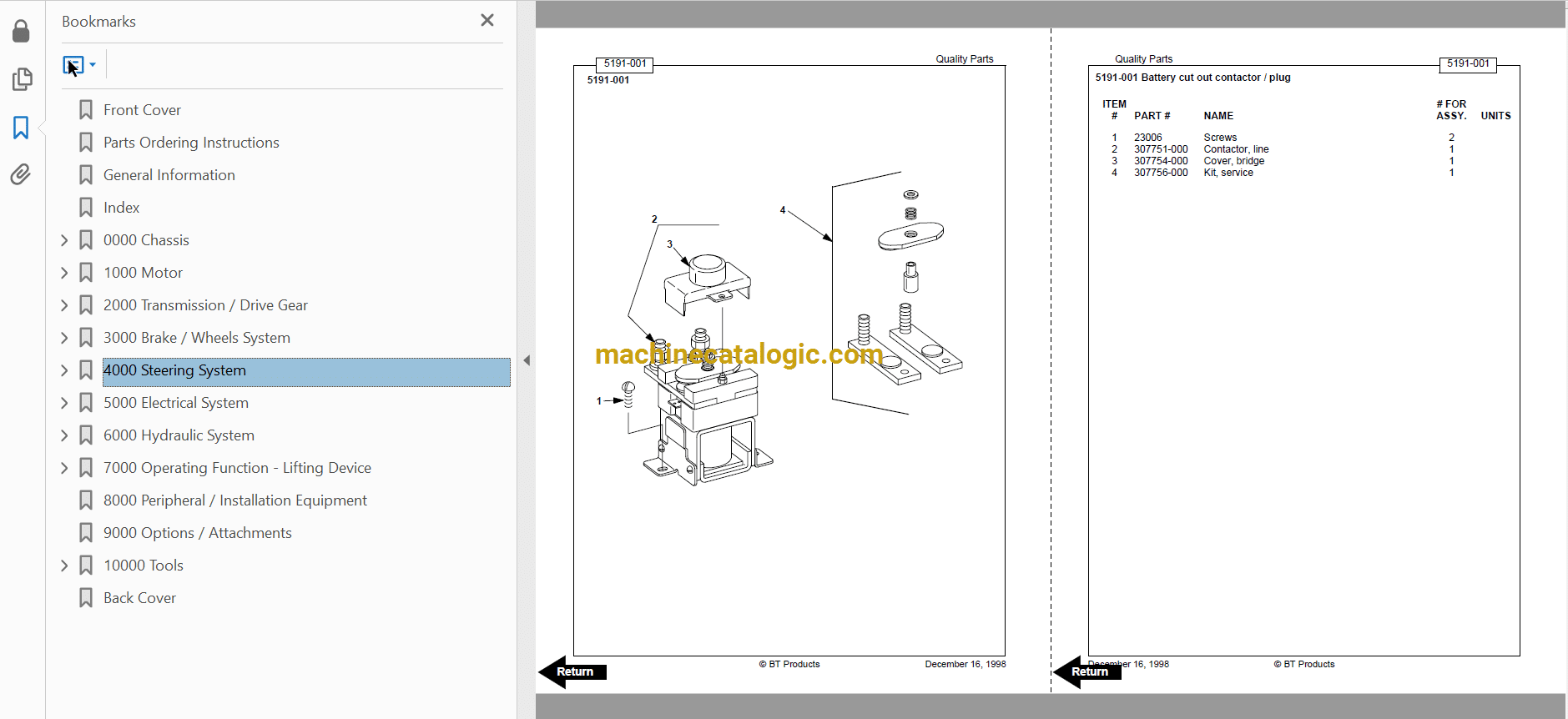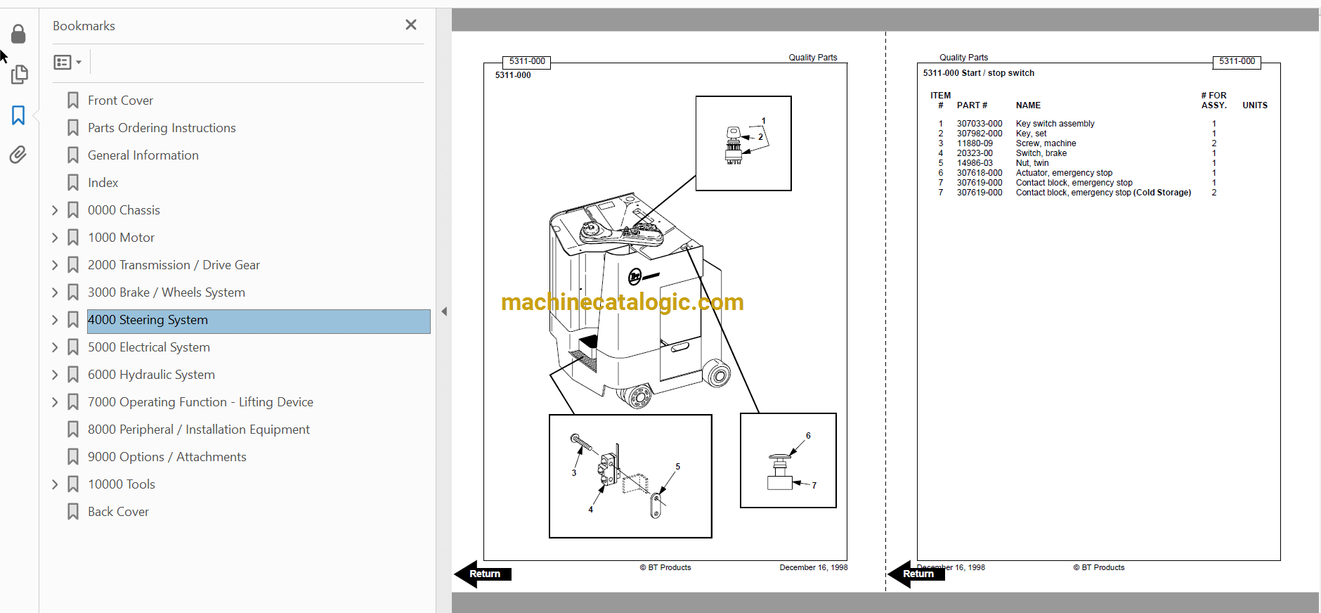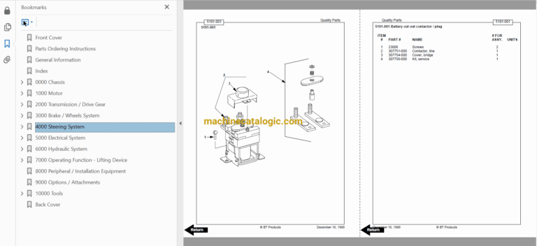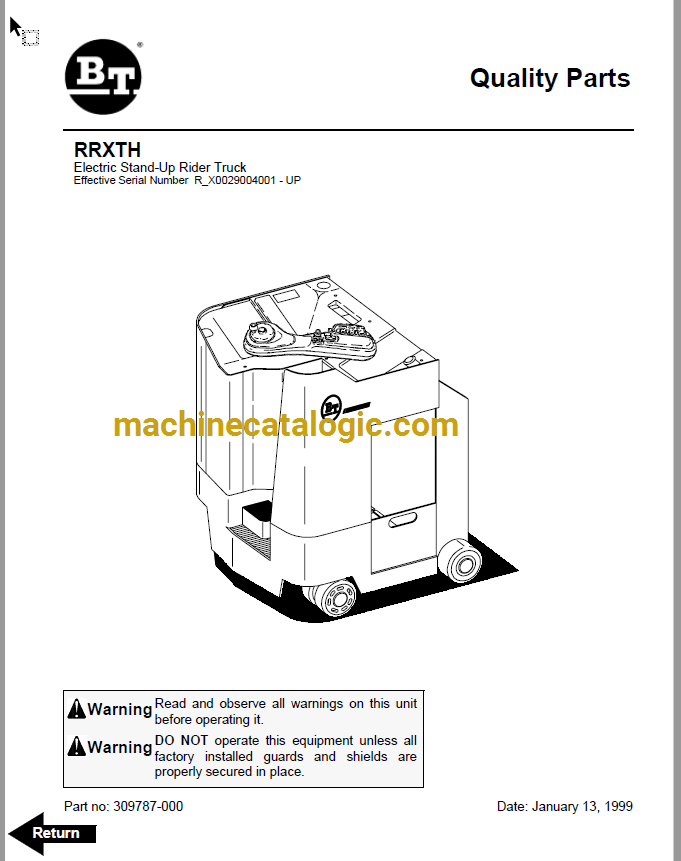 BT RRXTH Very Narrow Aisle Truck Parts Manual
