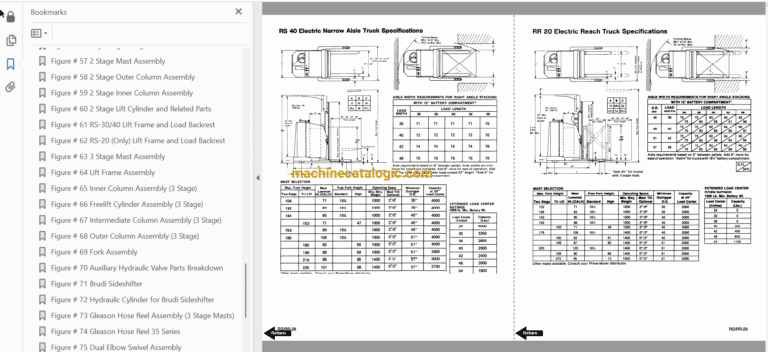 BT RS20, RS30, RS40, RR-20, RDR25, RR30 Reach Truck Maintenance, Operators and Parts Manual