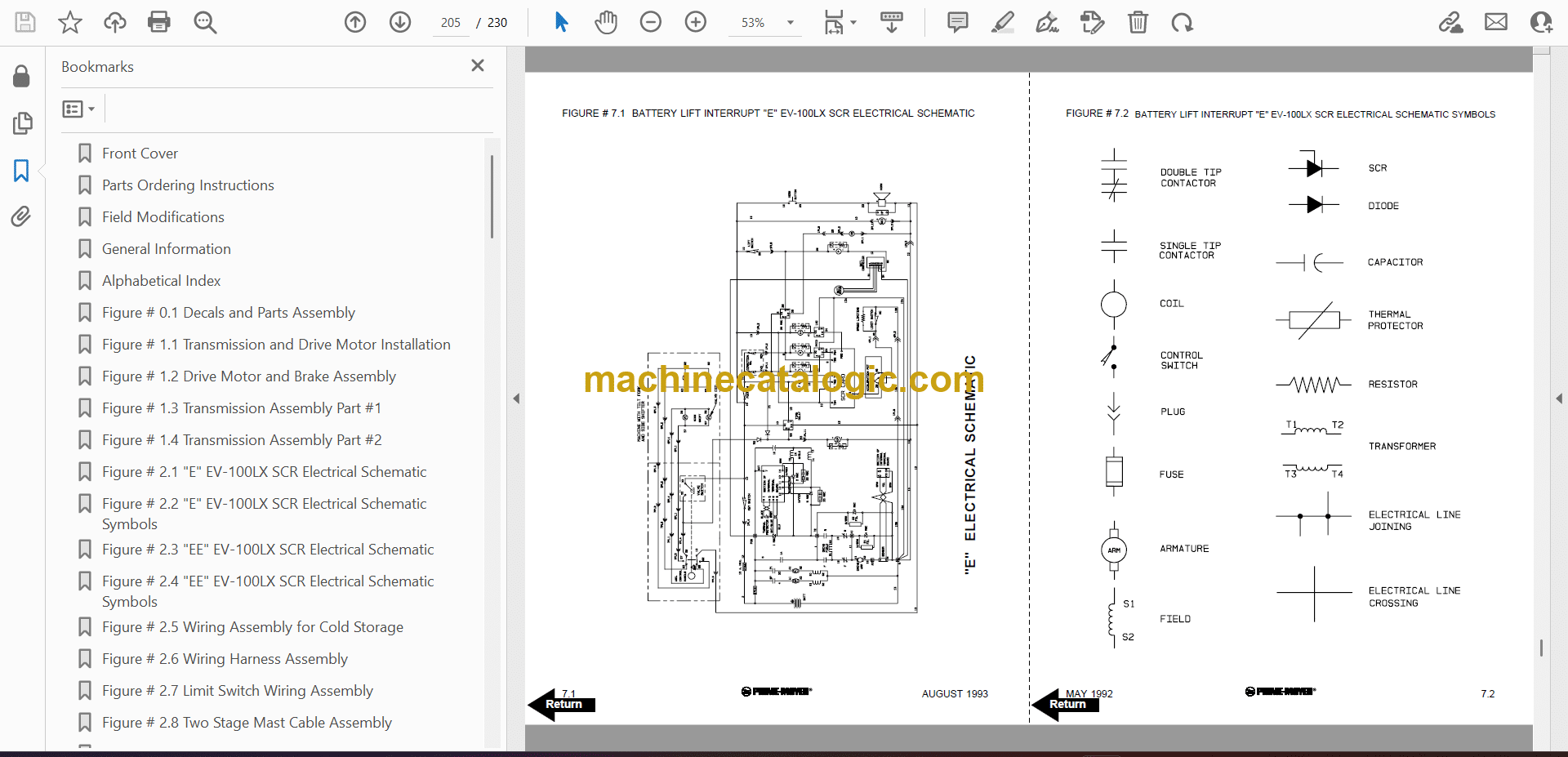 Figure # 7.2 Battery Lift Interrupt “E” EV-100LX SCR Electrical Schematic Symbols