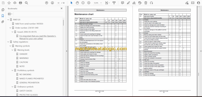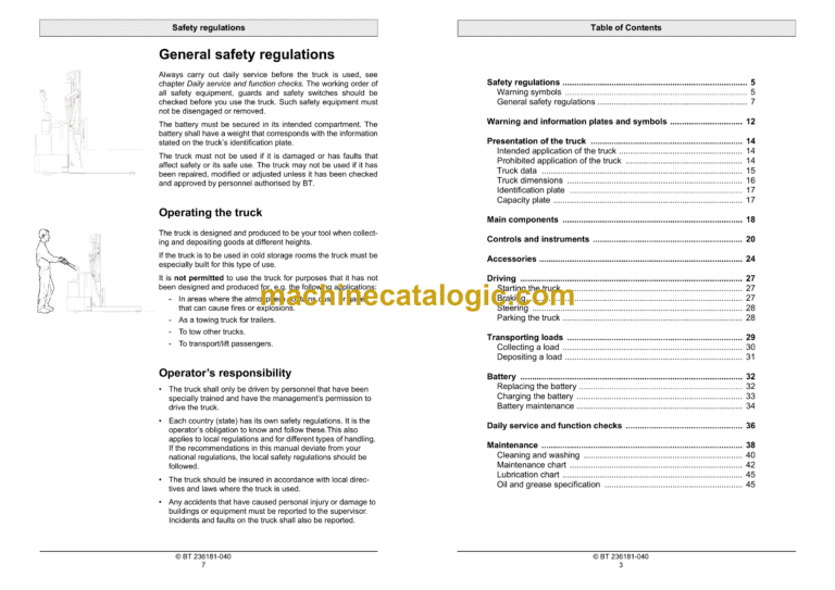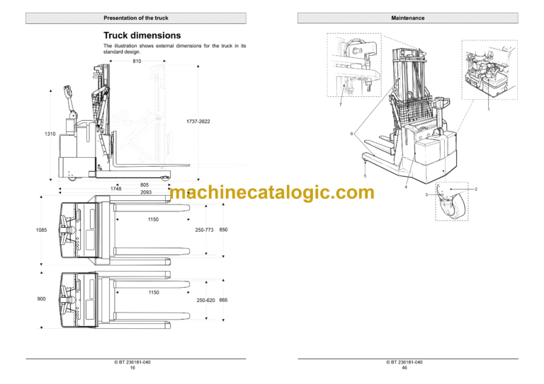 2. Identification plate: With model designation, serial number, year of manufacture, weight without battery, battery weight, rated capacity, battery voltage and manufacturer.