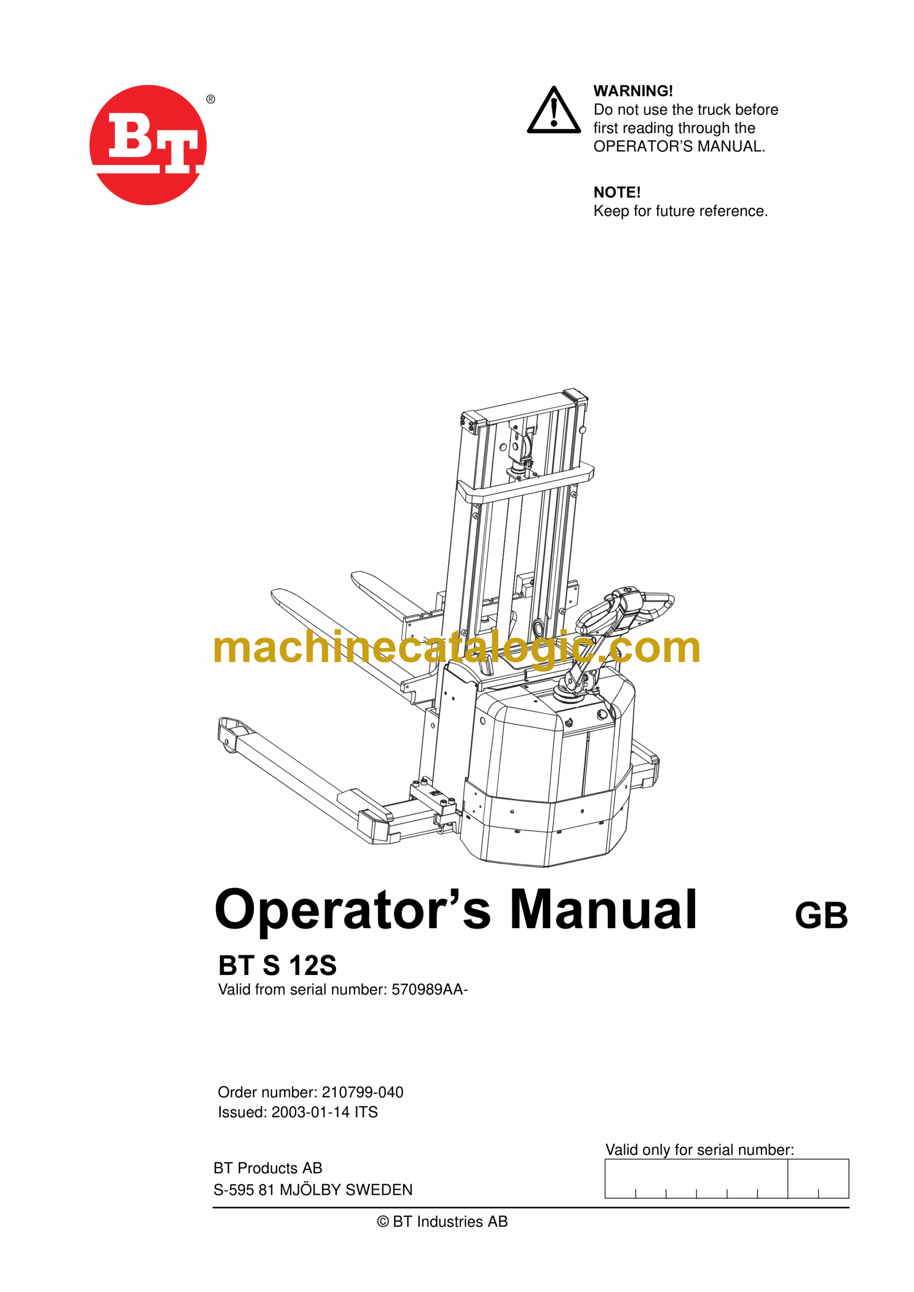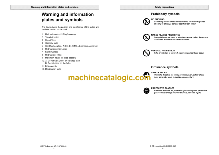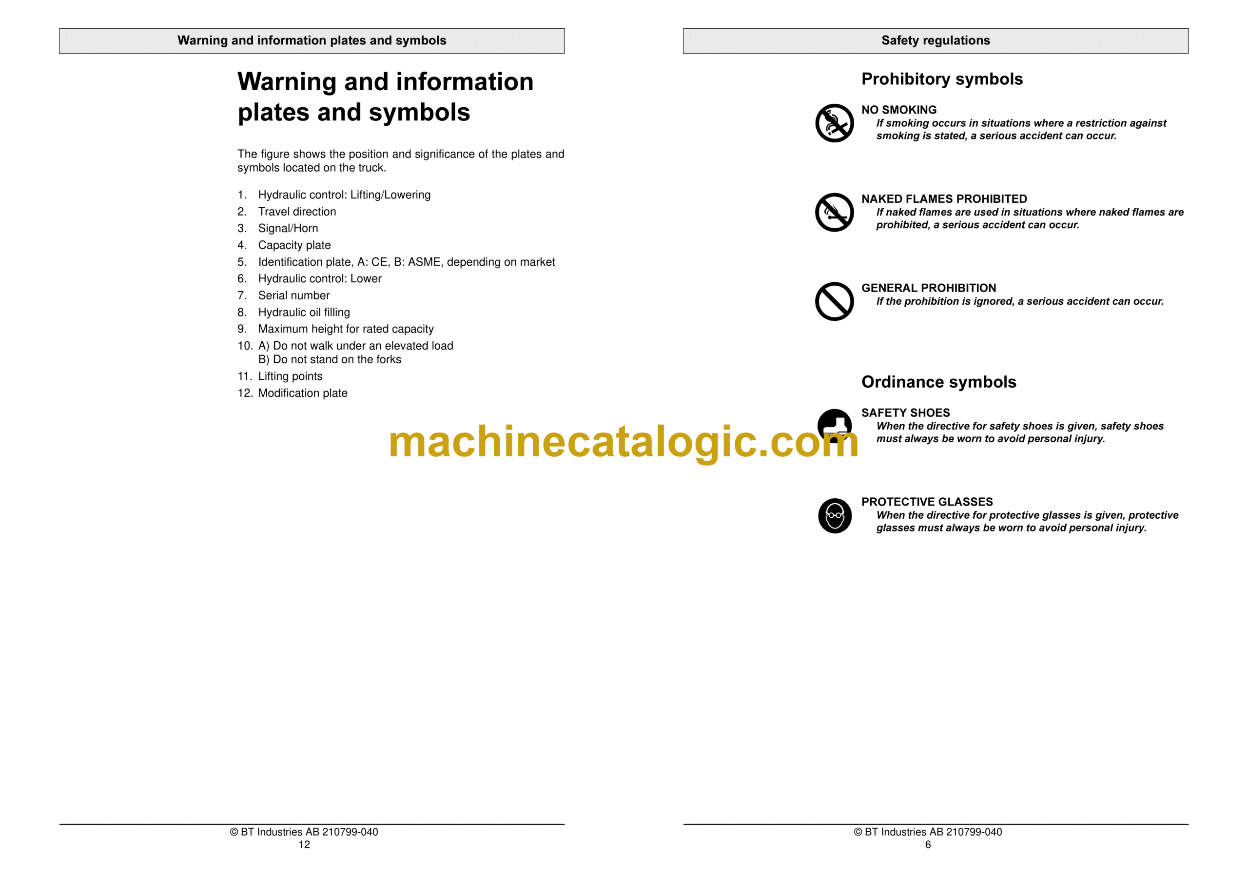 2. Identification plate: With model designation, serial number, year of manufacture, weight witho…
