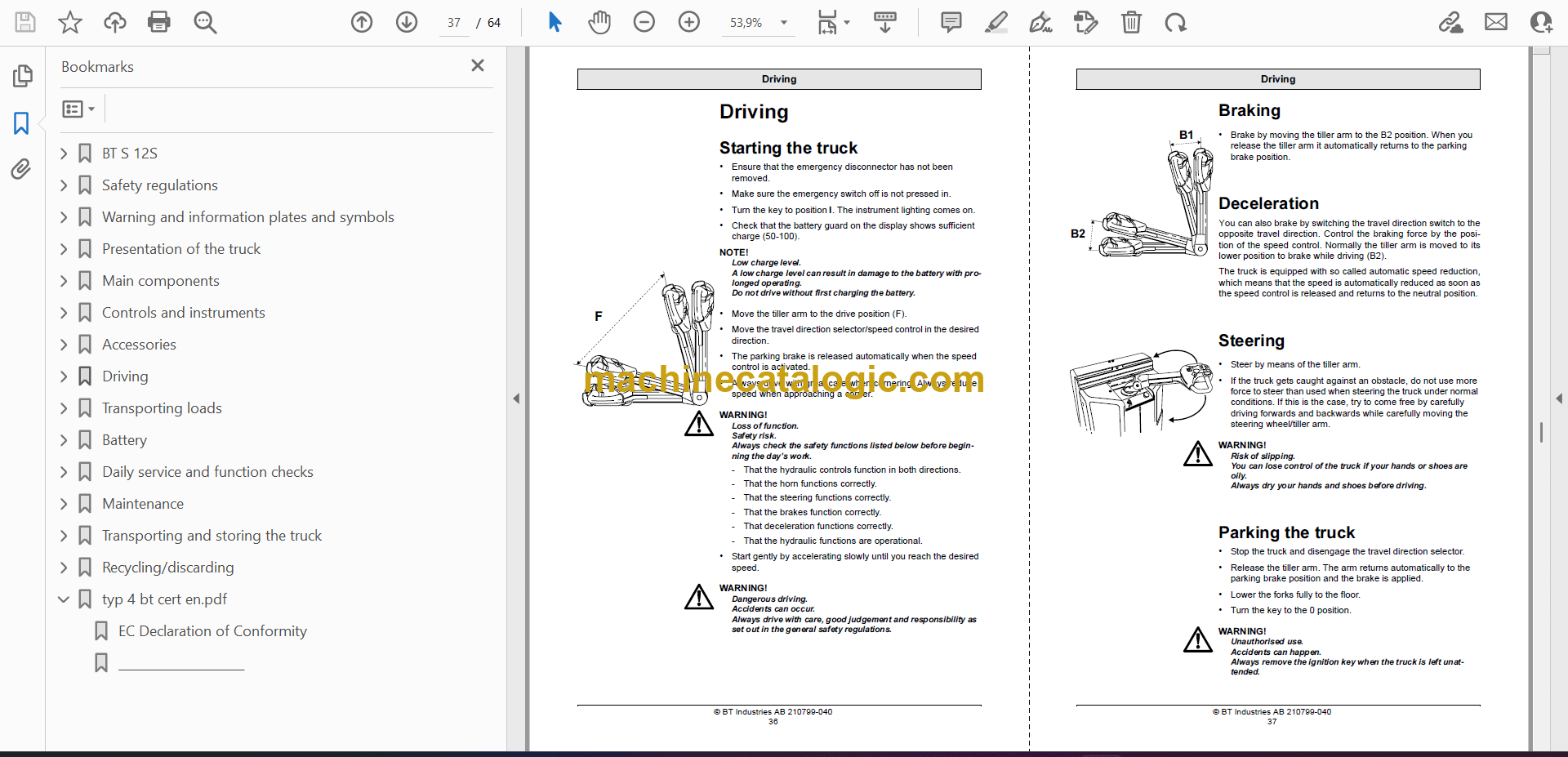 1. Tiller arm: The truck is manoeuvred by the driver while walking. 204 degree steering area. The…