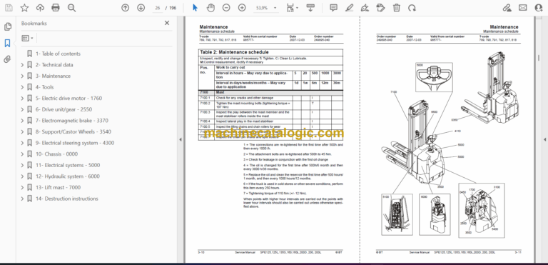 Model: SPE125, SPE125L, SPE135S, SPE160, SPE160L, SPE200D, SPE200, SPE200L Electric Stacker