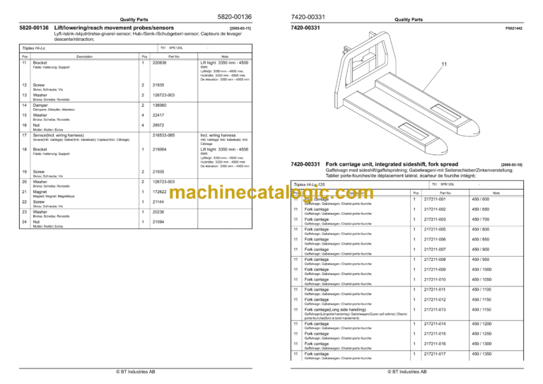 7420-00331 Fork carriage unit, integrated sideshift, fork spread [2005-03-10]