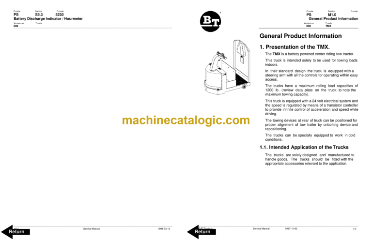 BT TMX Electric Forklift Master Service Manual