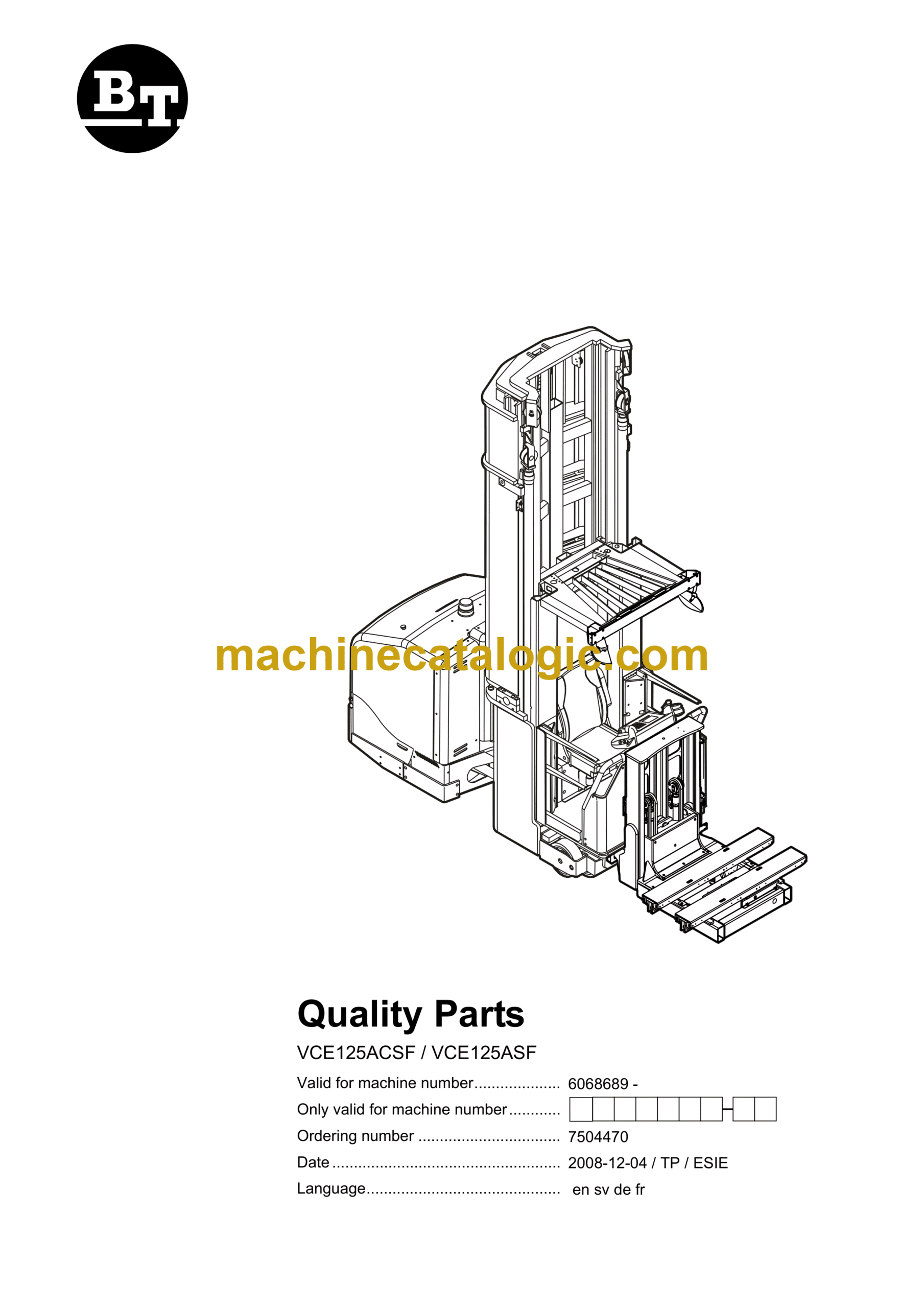 Model: VCE125ACSF, VCE125ASF Very Narrow Aisle Truck