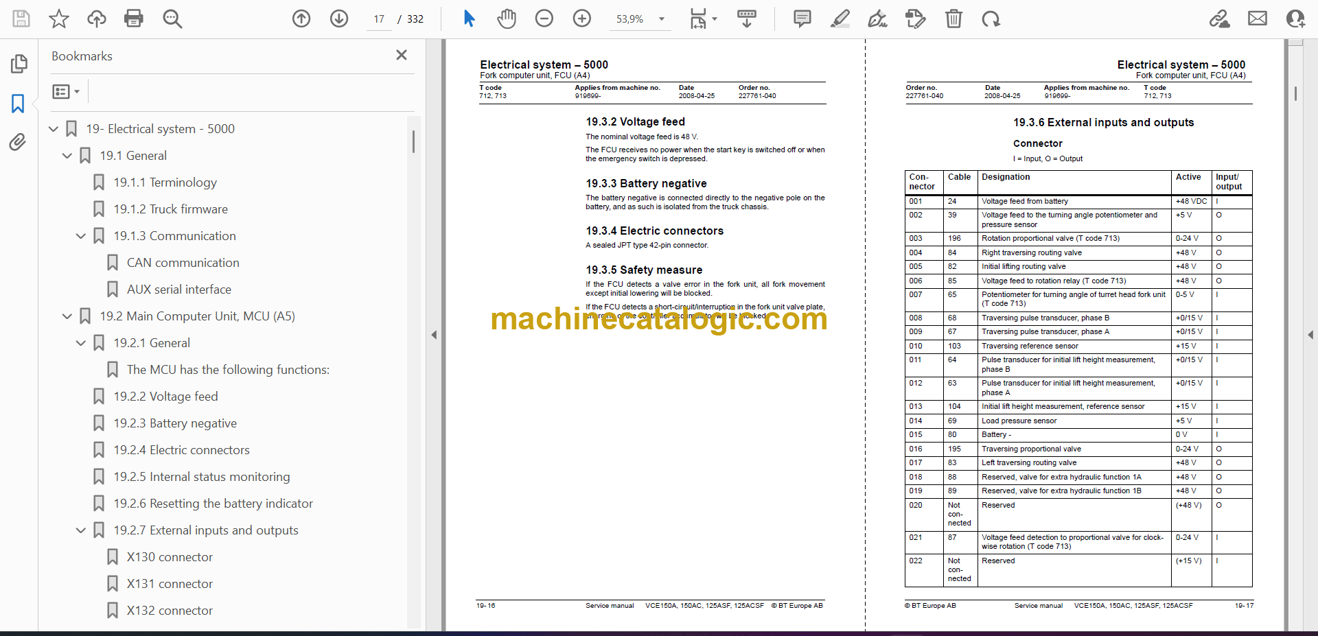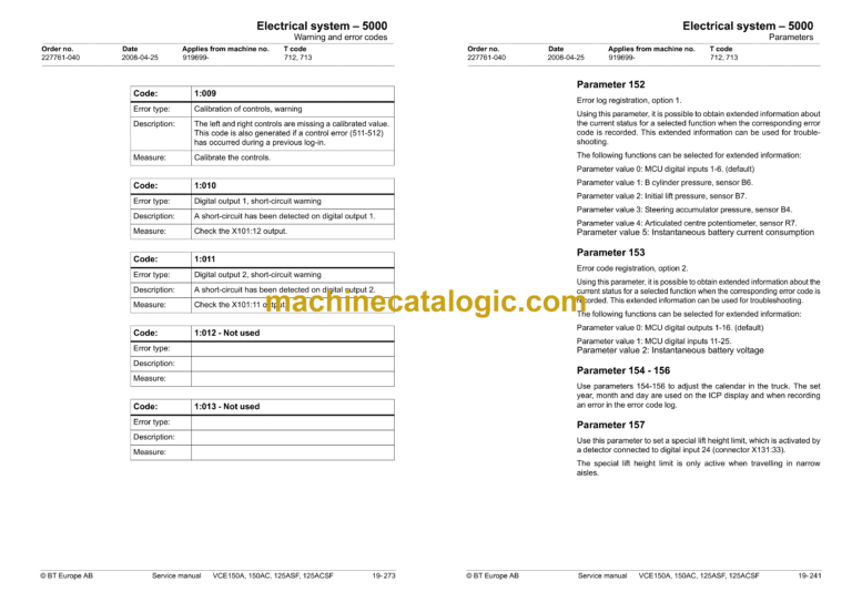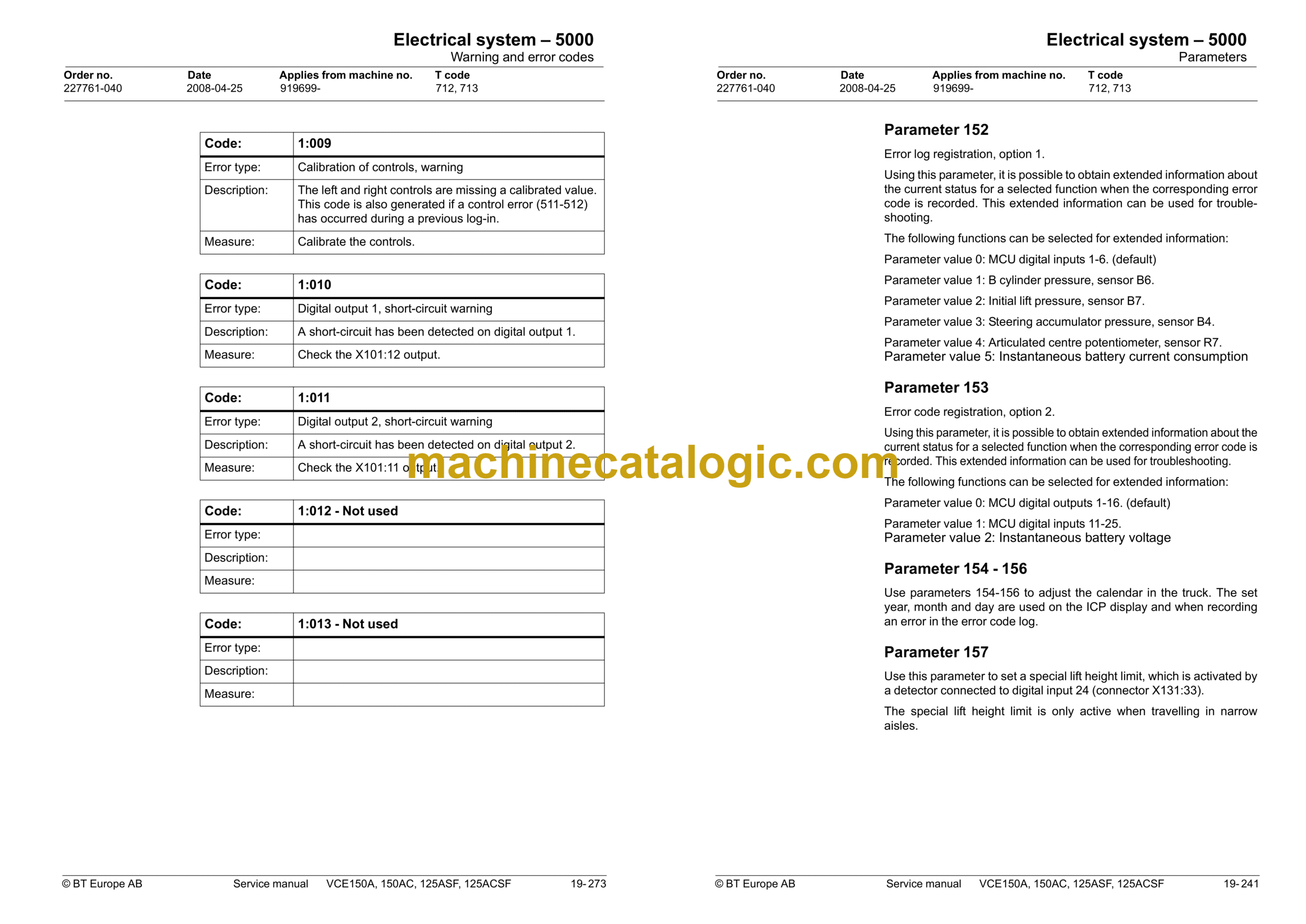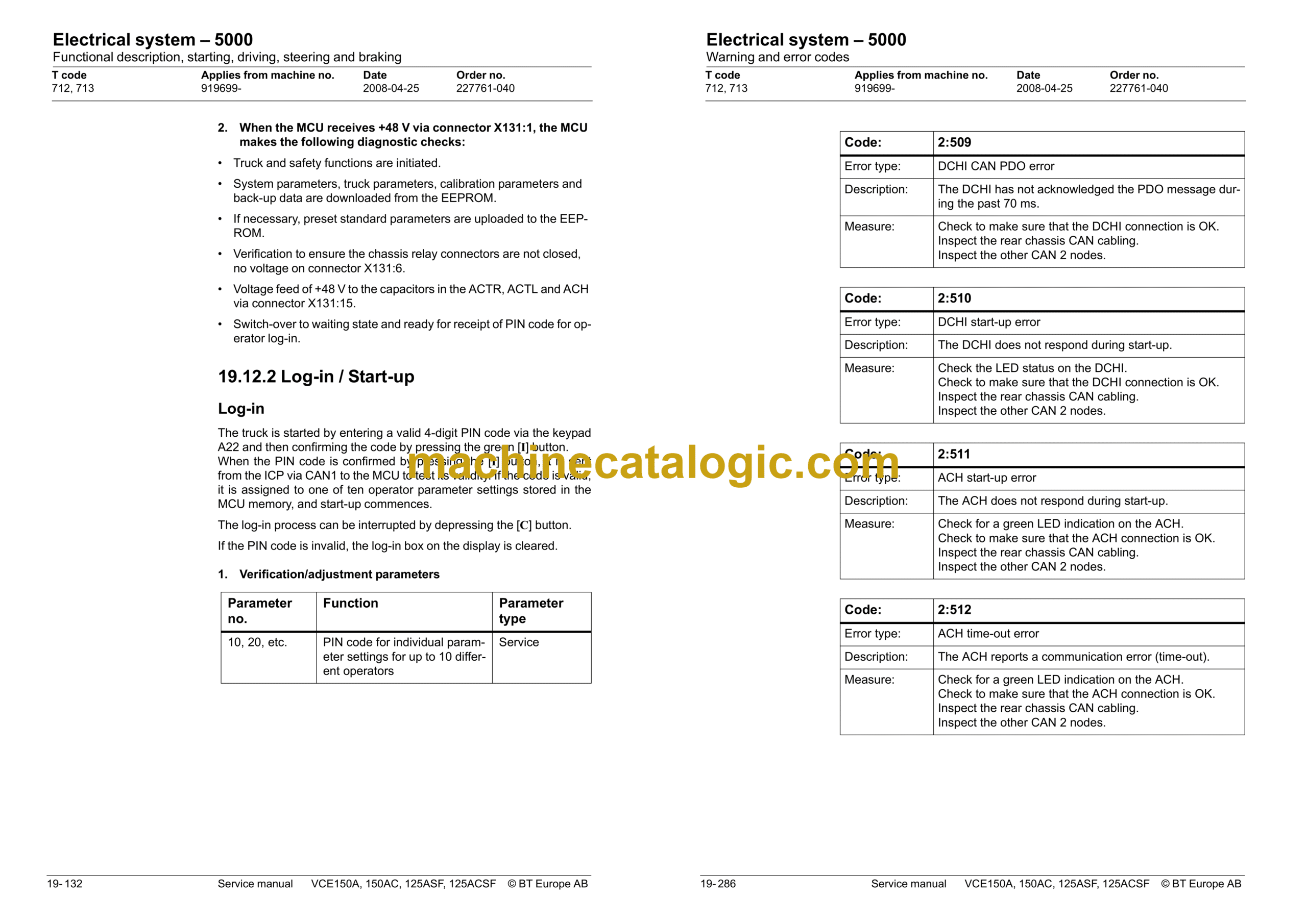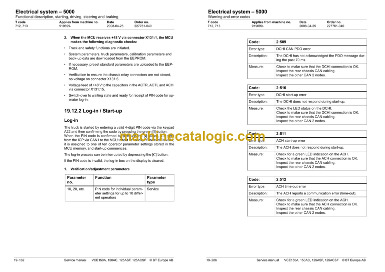 19.23.6 Initial lift and turret head fork unit systems, code group 6 (T code 712)