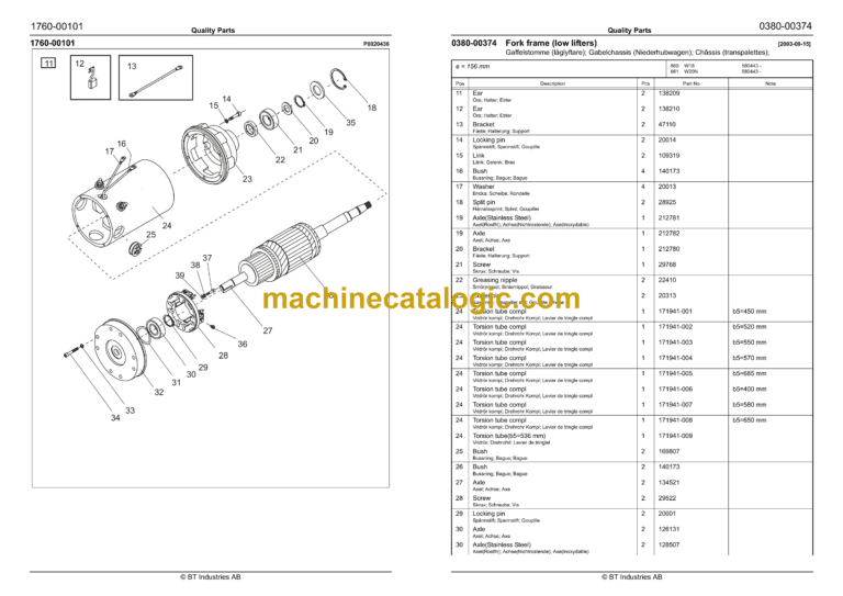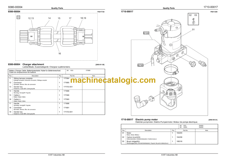BT W18, W20, W20N Electric Pallet Truck Quality Parts Manual