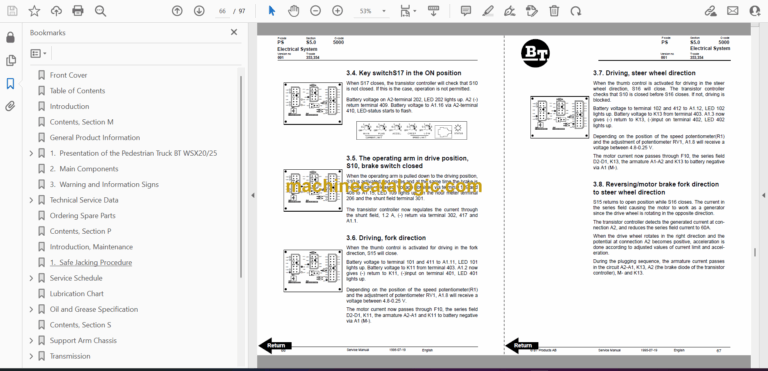 BT WSX20, WSX25 Electric Straddle Stacker Full Manual (Service, Parts and Operators Manual)