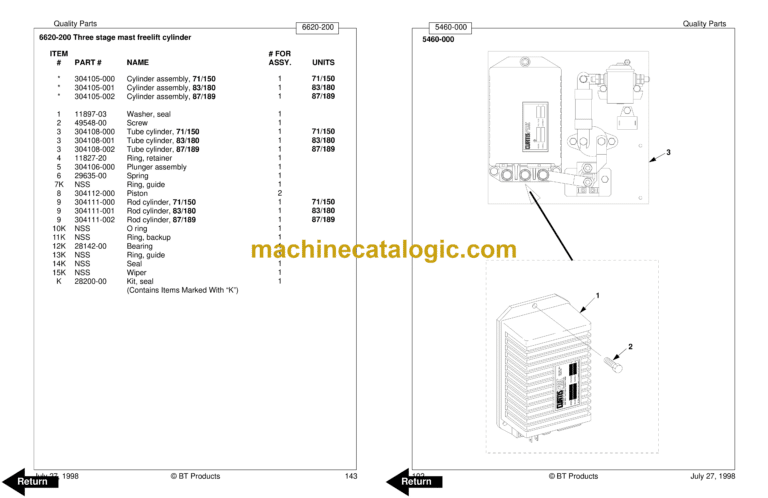 6610-000 Two stage mast lift cylinder Serial number 25268000 – 28163000